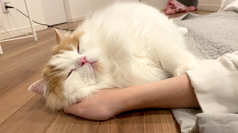 そして、いっぱい遊んだ後は飼い主さんの手を枕にして眠り始めました。普段はあまりやらないことだそうですが、飼い主さんに元気がない時はいつも寄り添ってくれるそうです(*´ェ`*)