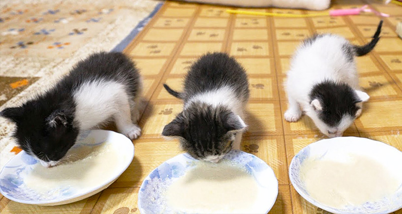 離乳食に挑む子猫達の様子はこちら。(動画)