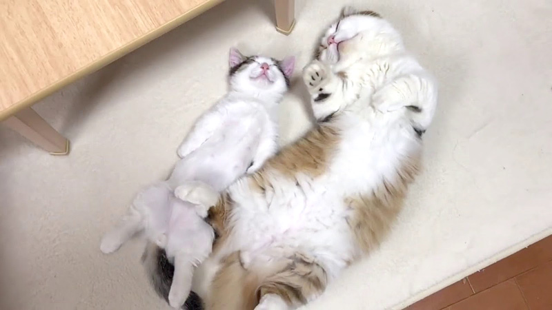 かわいい親子で気持ち良さそうに眠る猫のお父さんと息子。何があっても眠り続ける様子が可愛すぎる♡ By 猫のクロ - 2021年12月27日 FacebookTwitterLINE 一緒に並んで無防備なヘソ天姿で眠る父猫と子猫。どうやらふたり共とっても気持ちが良いようで、幸せいっぱいの姿で眠り続けます♪出典:ひのき猫そんなふたりの愛らしい姿を見ていた家族は、ついついふたりのことを触ってしまいますが…出典:ひのき猫何があっても幸せそうに眠り続けるふたりなのでした♡一緒に並んで気持ち良さそうに眠る親子の様子はこちら。(動画)とっても幸せそうなふたりの姿に自然と心が癒されますね(*´ェ`*)
