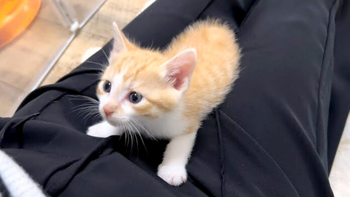 養育主さんの家で出会った少し年上の子猫達と一緒に、元気いっぱいの毎日を送っている子猫の『ミドリン』。この日も楽しそうに遊んでいたミドリンは、遊びの合間に養育主さんのところに甘えに来ました♡