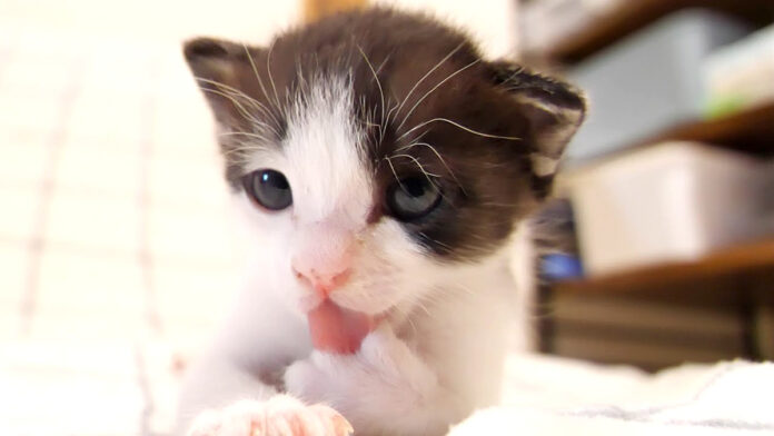 「もう待てない!」と飛び出してきた子猫にミルクを飲ませると… 満足しながら愛らしい行動に出た♡