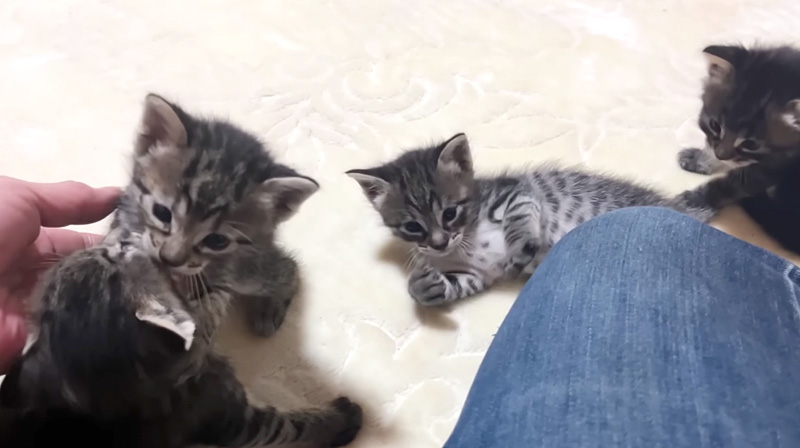 膝の上でやりたい放題な子猫達の様子はこちら。(動画)