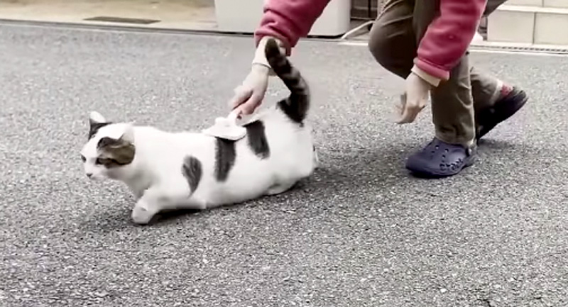 この日も大好きな散歩に出かけた猫さんをブラッシングし始めた飼い主さん。いつもならここで大人しくブラッシングされる猫さんですが、この日はブラッシング中に体勢を低くしながらウロウロと歩き始めました。どうやらその時にお腹と足の裏が汚れてしまったようです(^_^;)