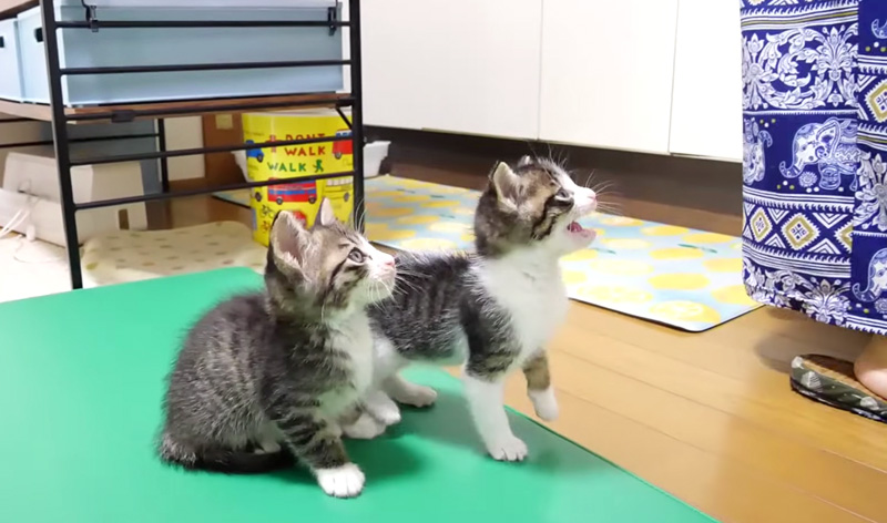 育ち盛りで食いしん坊の子猫達。この日も養育主さんがキッチンに立つと、すぐに『のぼる君』がやって来て猛アピールを始めました。さらに寝ていた『ゆずる君』も後からやって来て、のぼる君を援護し始めました!