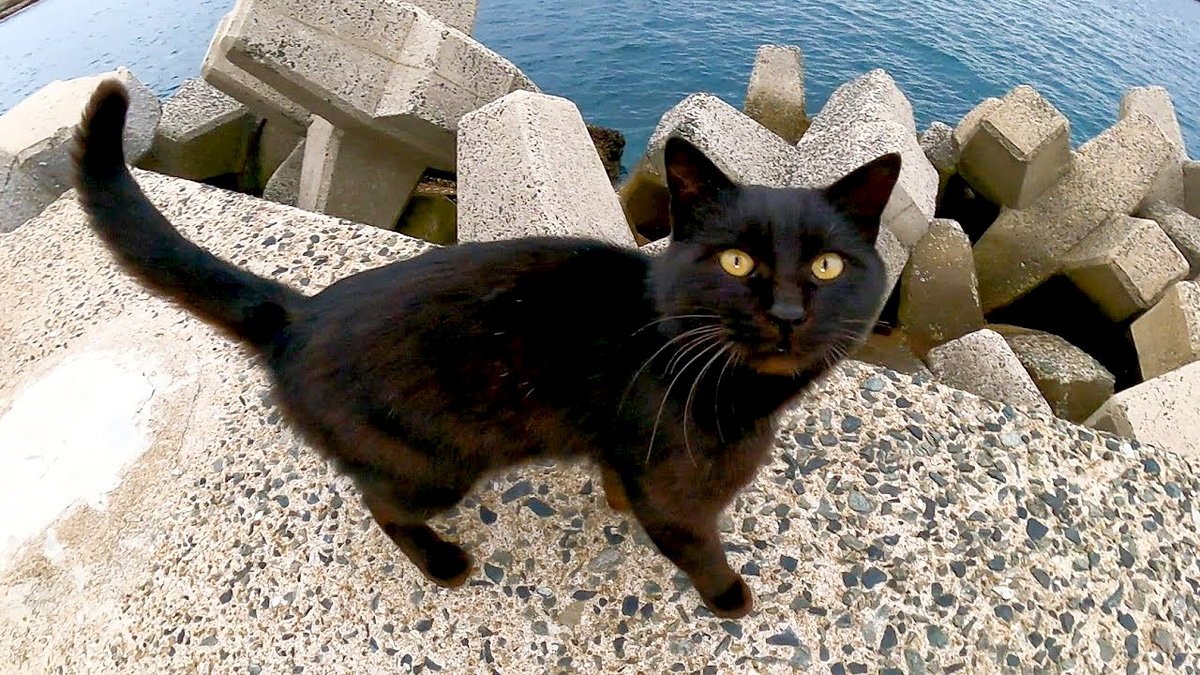 ある日、男性が防波堤散策をしていると1匹の猫さんが後をついてきました。どうやら何か伝えたいことがあるようで、男性と一緒に歩きながら、次々と可愛い声で話しかけてきました♪