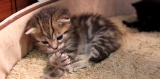 遊び疲れて無防備な姿で眠り始めた子猫の可愛すぎる姿にキュンとする ( *´艸`)♡