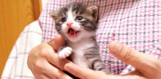 超高音で鳴きながら膝に登ってミルクをおねだりする子猫にキュンとする♡